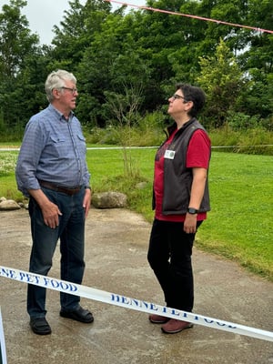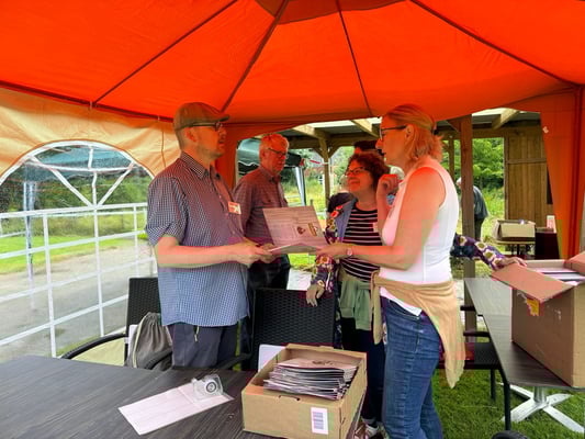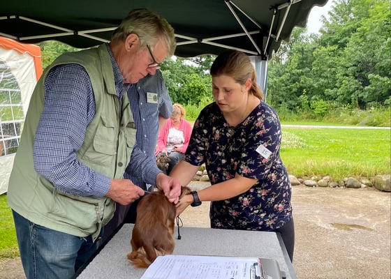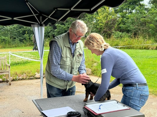 Am 30. Juni 2024 fand unsere Zuchtschau auf dem Vereinsgelände am Bövelstredder in Scharbeutz statt. Das Wetter war leider nicht sehr dackelfreundlich. War es tags zuvor beim Aufbau des Geländes noch so heiß, dass alle Helfer schwitzten, so begleitete am Tag der Zuchtschau ein mal stärkerer, mal geringerer Dauerregen die Teckel und ihre Führer:innen, was einige Vierbeiner nicht zu freudigem Laufen im Kreis motivierte und auch deren "Frisur" oftmal ein wenig lockiger erscheinen ließ. Dennoch präsentierten sich alle Teams hervorragend und stellten sich dem prüfenden Blicken des Richters, Herrn Heinrich Klümper, der nicht nur immer ein sehr fachkundiges Urteil, sondern auch stets nette Worte und nützliche Tipps den Teams mitgegeben hat.